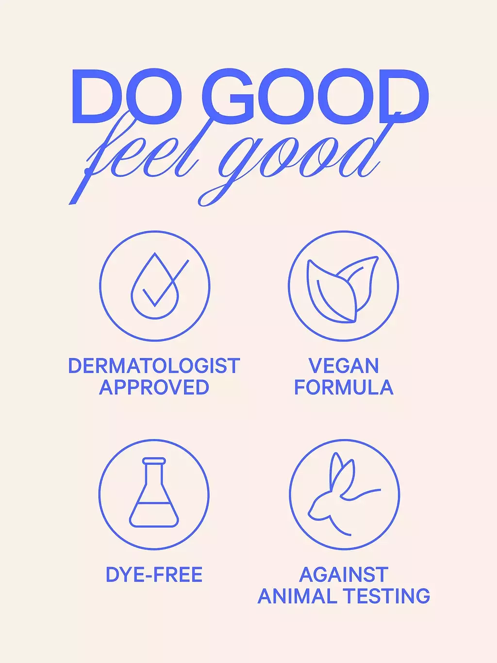 Aprovado por dermatologistas, vegano, contra testes em animais e sem corantes.